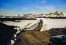 Im isländischen Hochland kommt man meist nur in allradgetriebenen Fahrzeuge vorwärts. Bei Durchquerungen von Süd nach Nord waren im Mittelalter die Routen über Kjölur und Sprengisandur angesagt. Auf diesen Strecken finden auch heute Touristen sehenswerte Attraktionen Islands. Weitere Ausflüge führen nach Landmannalaugar, Þórsmörk und zur Caldera Askja sowie zum Geothermalgebiet mit seinen Eishöhlen im Gebirge der Kverkfjöll.