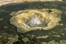 Die obere Aufnahme zeigt die kleine Springquelle Eyvindarhver im Hochtemperaturgebiet Hveravellir im zentralen Hochland. Wesentlich mächtiger hingegen ist die Solfatare Öskurhöll (dt. Brüllender Hügel) auf der unteren Aufnahme. Schon seit 1938 ...
