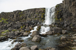 An kaum einem anderen Ort in Island sieht man das Auseinanderdriften der Kontnentalplatten deutlicher als in Thingvellir. Nördlich der Allmännerschlucht stürzt der kleine Fluss Öxará (Axtfluss) über die Kante des Grabenbruchs. Es heißt, der ...